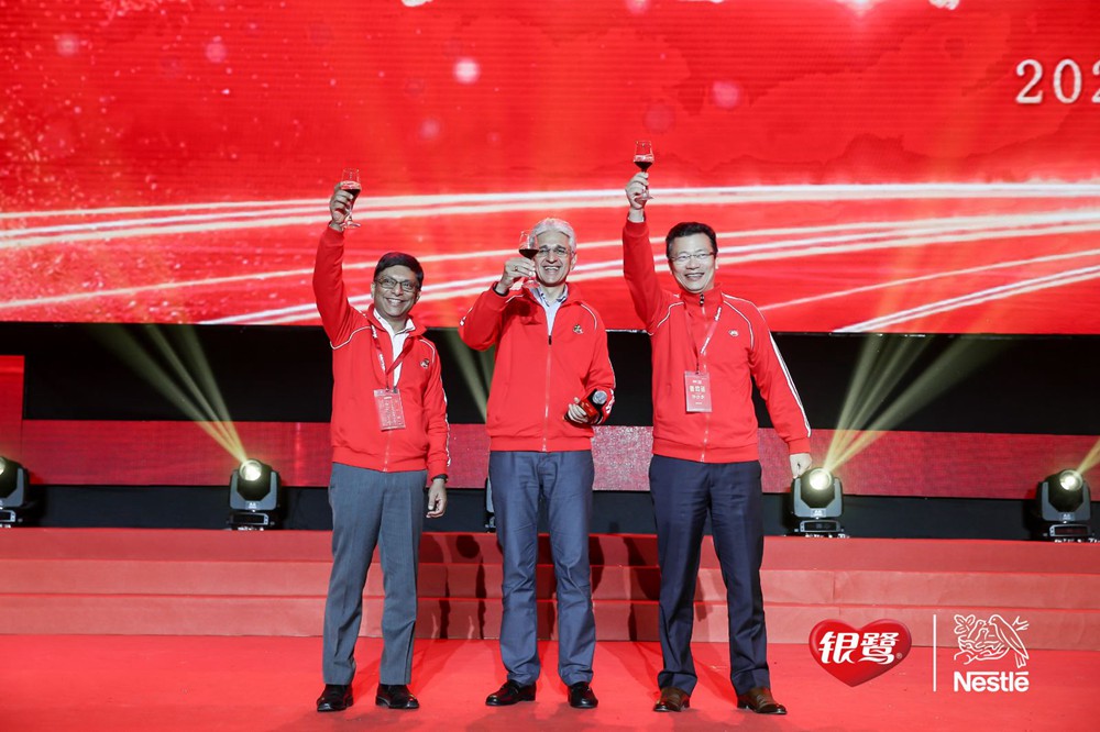 經(jīng)銷商答謝晚宴于當(dāng)晚6時(shí)許正式開始,雀巢大中華區(qū)董事長(zhǎng)兼首席執(zhí)行官羅士德先生、銀鷺食品集團(tuán)總裁兼CEO崔伍迪先生為宴會(huì)致辭,并為獲得長(zhǎng)期合作獎(jiǎng)的經(jīng)銷商伙伴頒獎(jiǎng)。