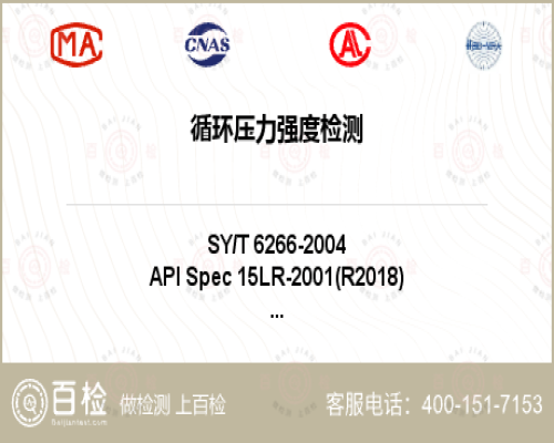 循環壓力強度檢測項目詳情1、低壓玻璃纖維管線管和管件 SY/T 6266-2004 5.2.1---玻璃纖維管循環壓力強度項目檢測